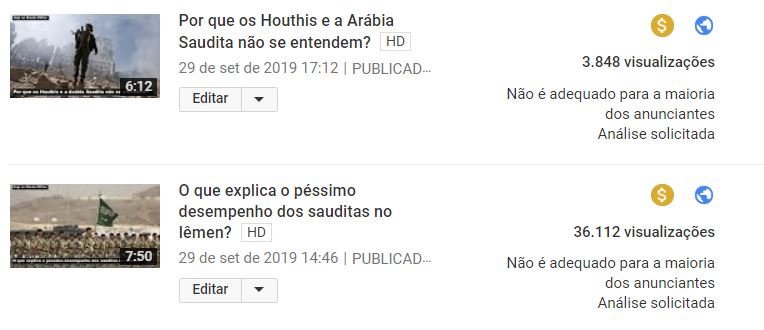 Caros amigos, respondendo algumas pessoas perguntando se os vídeos foram monetizados pelo @YouTubeBrasil @TeamYouTube, nunca se esqueçam daquela regra máxima: se o vídeo informa, educa e trás notícias importantes que não se encontra em outras mídias, a resposta é NÃO!pic.twitter.com/QEJRa4zhBr