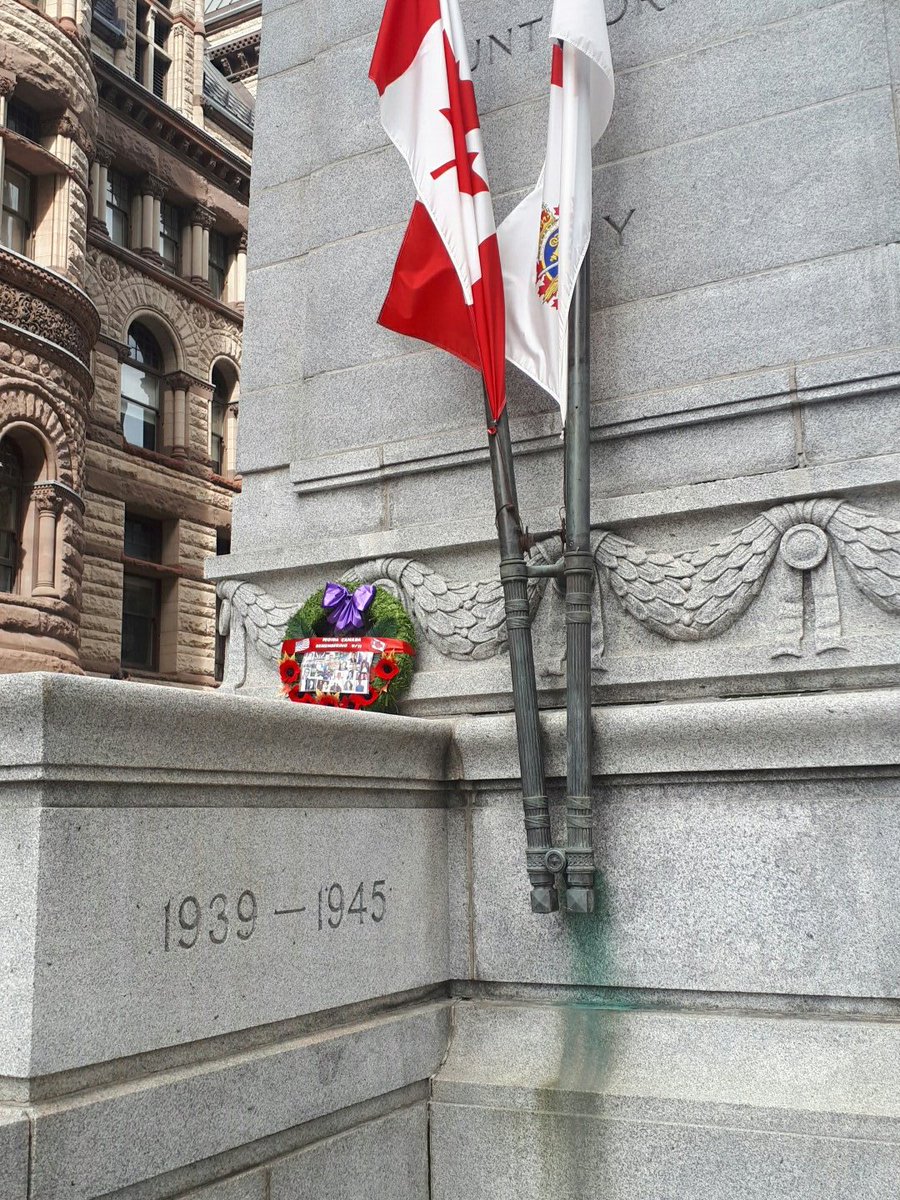 PEGIDA placed this wreath down at the cenotaph before slipping away. Counter protesters are likely heading to 52 division for "jail supportpic.twitter.com/f4rVRVxBuQ
