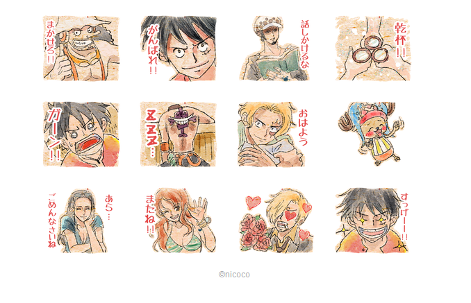 ワンピースとコラボのLINEスタンプ、無事承認されて販売開始になりました!! にここの水彩ONE PIECEスタンプ - LINE スタンプ | LINE STORE https://store.line.me/stickershop/product/12637659/ja …