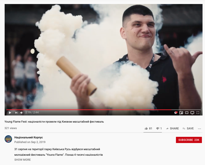 "White Power", "Hass", "Sieg", "Ehre" on a giant screen. That's "Young Flame" fest thrown by far-right Azov movement on August 31st close to Kyiv, Ukraine. Such signals are also meant for - heard & understood by - white nationalists outside of Ukraine https://www.bellingcat.com/news/uk-and-europe/2019/02/15/defend-the-white-race-american-extremists-being-co-opted-by-ukraines-far-right/ …pic.twitter.com/zhIZlAvsMP