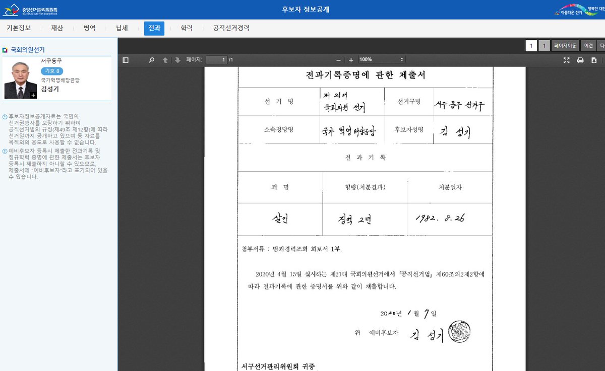 Take Kim Sung-ki of the National Revolutionary Dividends Party who spent 2 years in prison for murder. He's running for a seat in Busan. pic.twitter.com/BU2WIBuHNQ