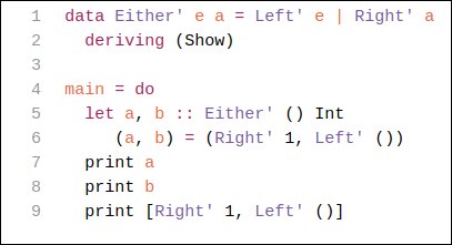 #Haskell (note: you need type annotations for a and b, because otherwise the respective other type variable is ambiguous. Last print none.pic.twitter.com/lvEJOwq7vX