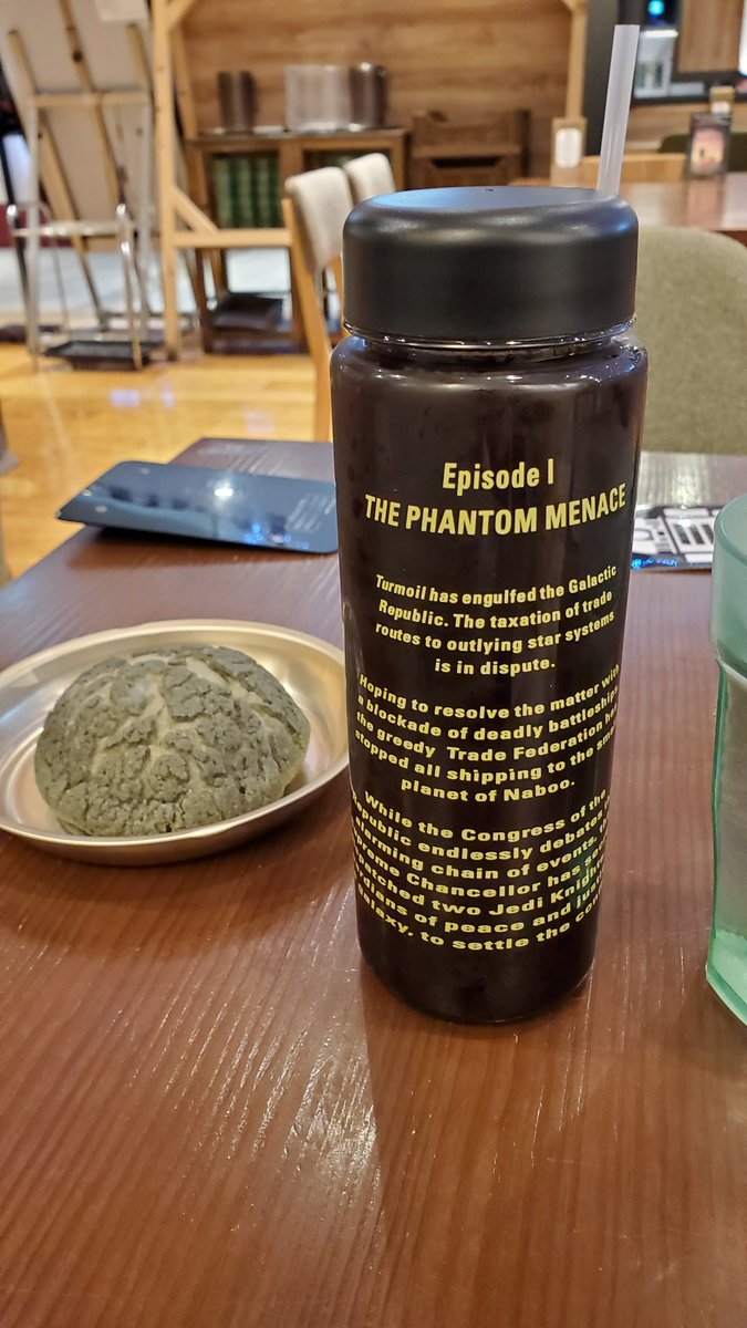 博多マルイにて、STAR WARSカフェが限定オープンしてるので行ってきました。 時間制となっているので、行く人は注意して下さいね。( ̄ー ̄)b 折角なのでと、ボトルが貰えるアイスコーヒーを。pic.twitter.com/AgG9WYNOqM