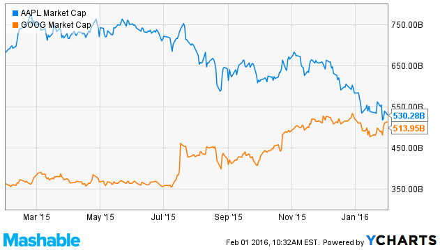 If Google posts strong earnings report today, there's a good chance it will pass Apple in market value for 1st timepic.twitter.com/veJHpmG4ut