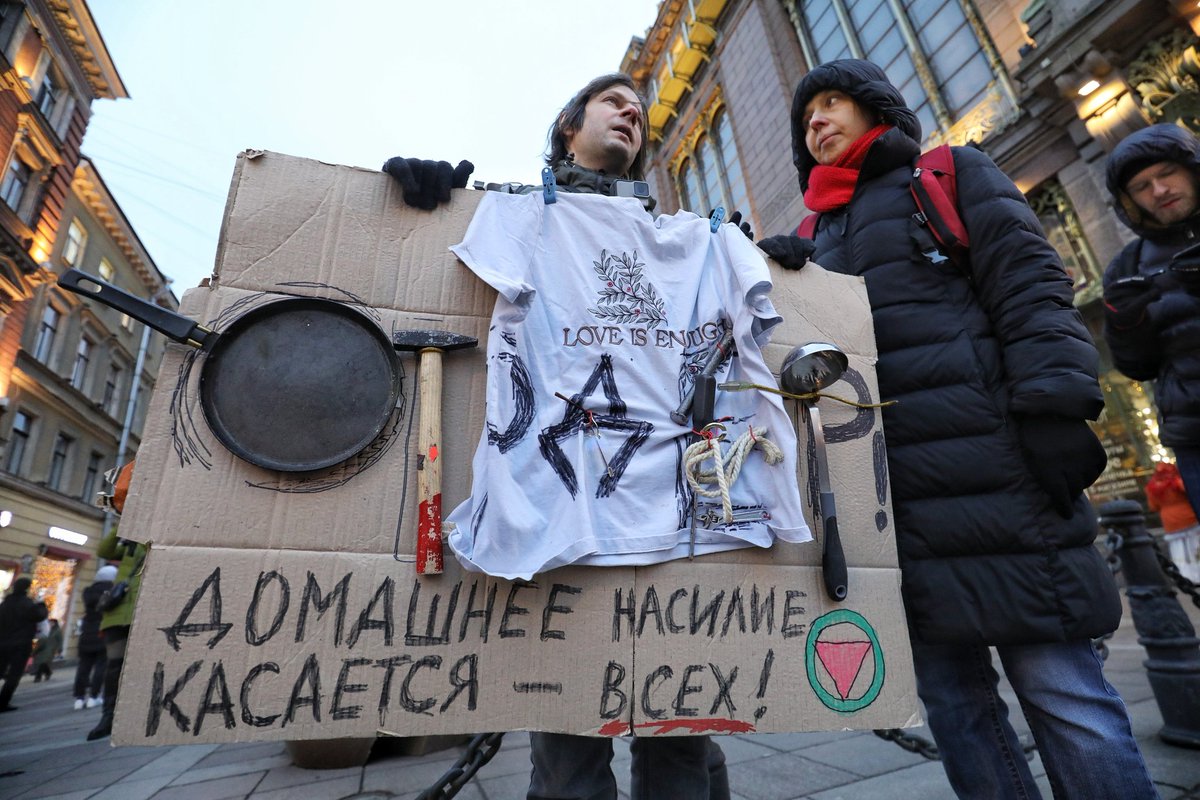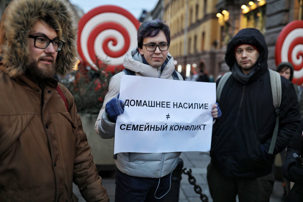 На Невском мужчины пикетируют в поддержку закона о домашнем насилииpic.twitter.com/hsJDZ6PgUz