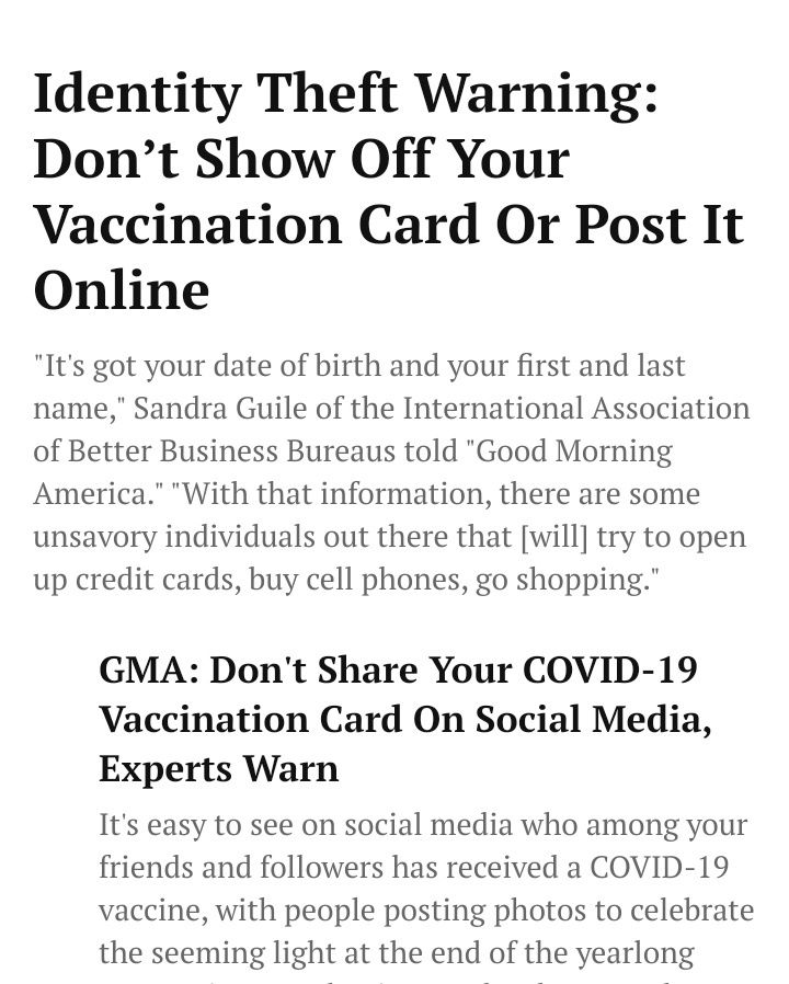 Vaccination cards have personal information contained on itpic.twitter.com/HyClS7GctB