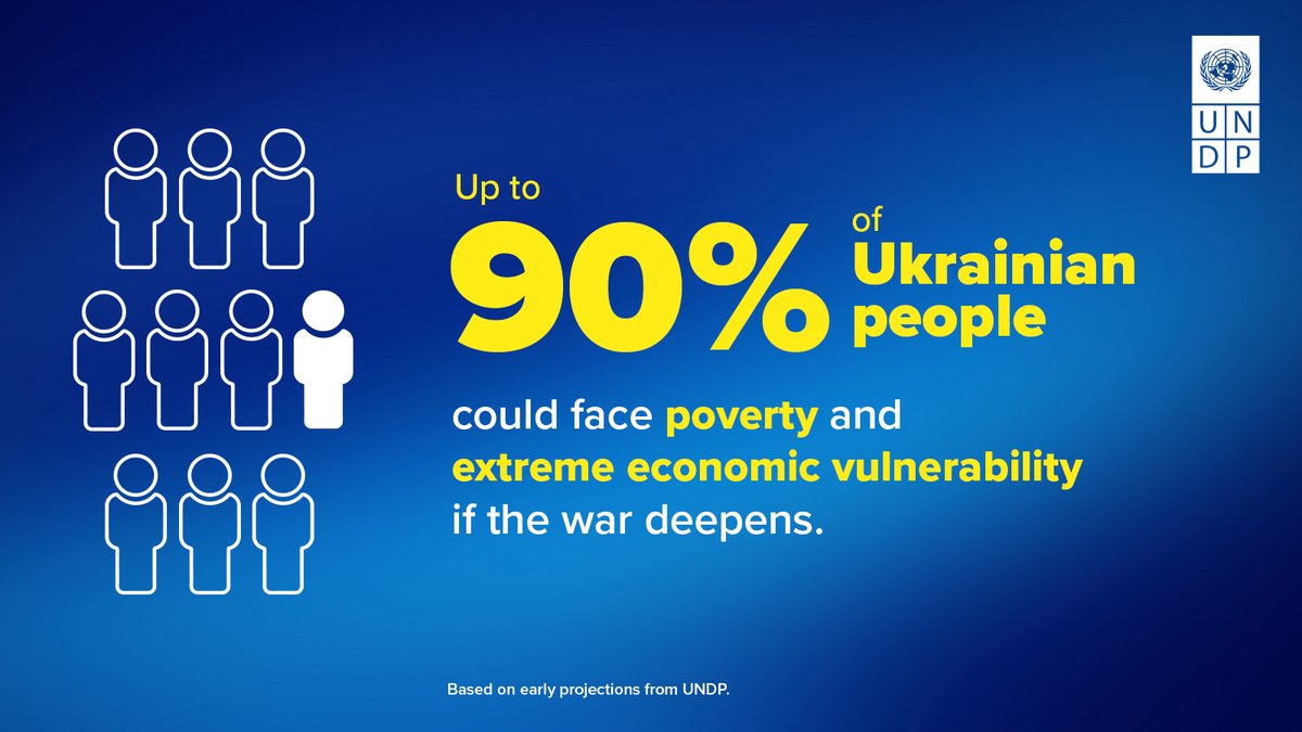 #Ukraine, every day of delayed peace will accelerate a freefall into poverty. According to our early projections, almost 1/3 of Ukrainians could fall into poverty within a year and an additional 62% are at high risk of falling into poverty: https://bit.ly/3Ikth1n pic.twitter.com/nPOJtd4gbJ