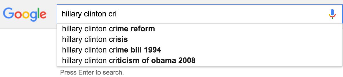 Google claims not manipulating Clinton autocomplete. See screenshots http://www.washingtontimes.com/news/2016/jun/10/google-denies-burying-bad-hillary-clinton-stories/ …pic.twitter.com/l4kxjE47jR