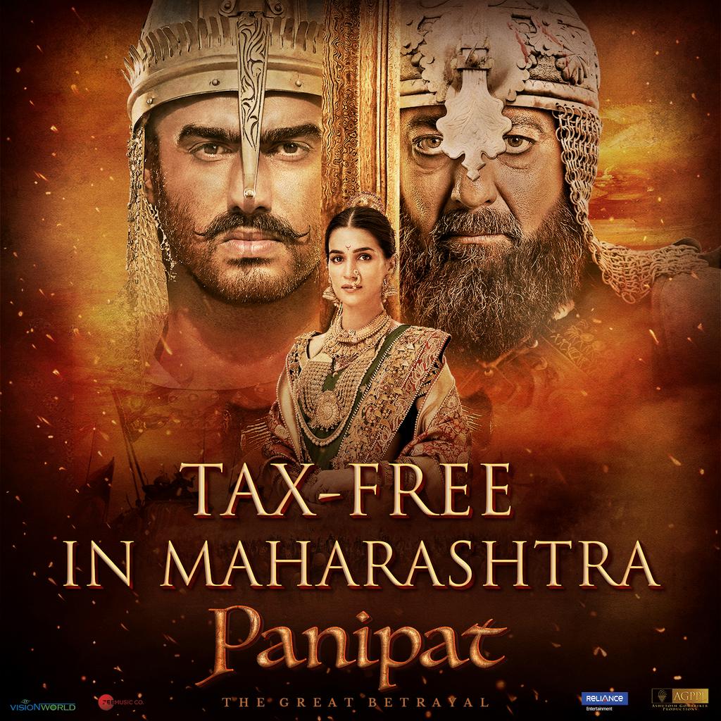for imparting TAX FREE status in our attempt of bringing the Maratha Glory to the screen through #Panipat !@duttsanjay@arjunk26@kritisanon#SunitaGowariker@RohitShelatkar@Shibasishsarkarpic.twitter.com/H374bAgrtk