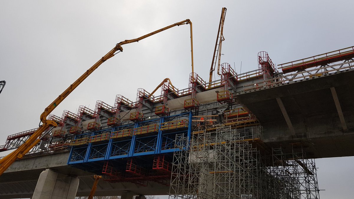 Trwa ostatnie betonowanie mostu maszyną MSS w ciągu