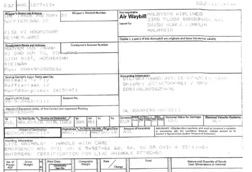 According to the manifest pigeons were heading to Vietnam, where pigeon racing is a popular sport. There were also “live birds” in the manifest, but I have no idea what happened to them. There also was a dog which probably died in the crash due to its relatively heavy weight.