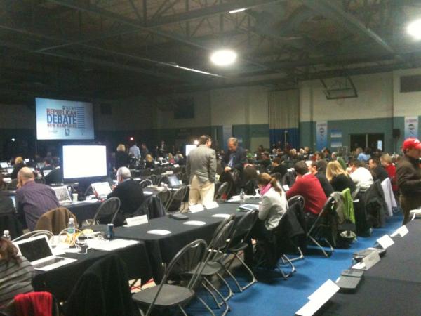 The press filing center at the debate in Manchester #nhdebatepic.twitter.com/k8FQnRJ2