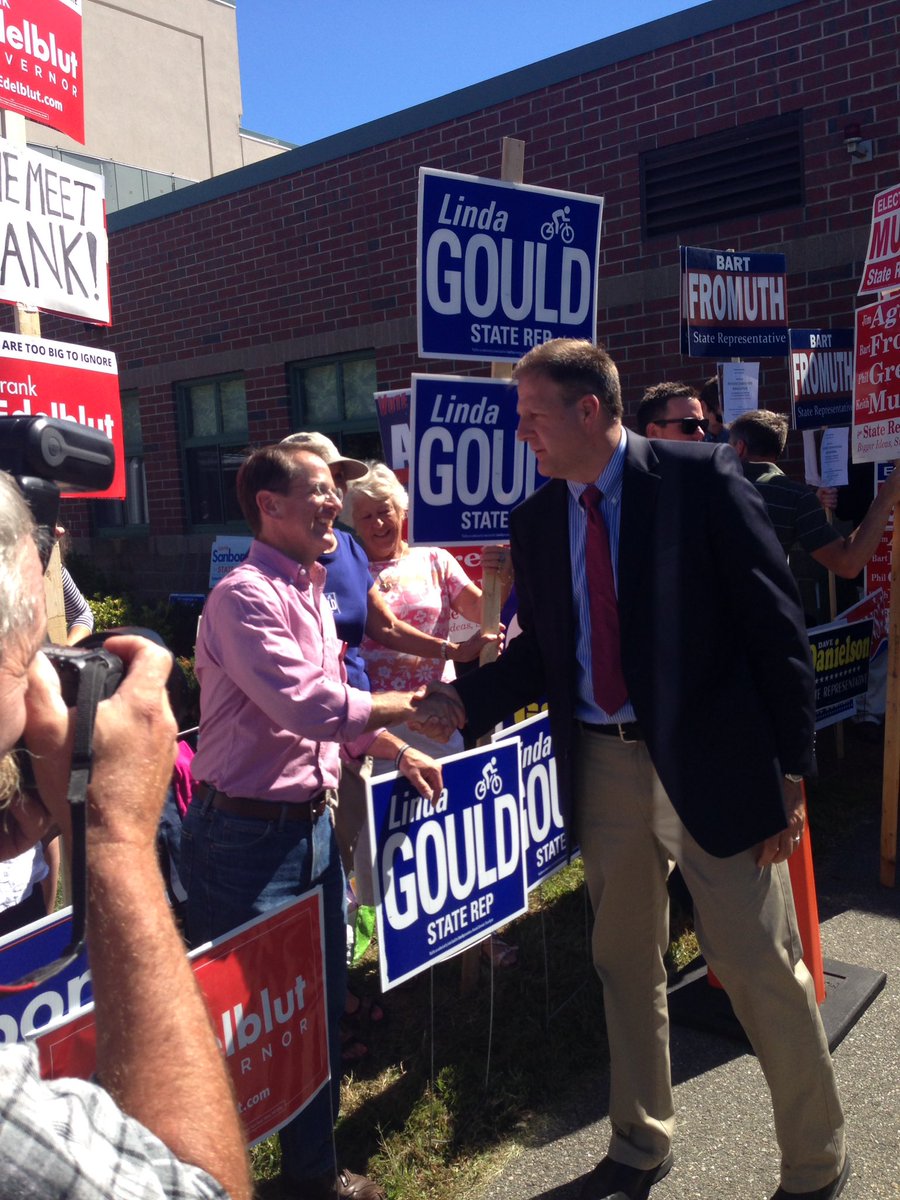 Spotted at Bedford polling place: GOP gov rivals Chris Sununu and Frank Edelblut shaking hands #nhpoliticspic.twitter.com/3gqP32bRLI