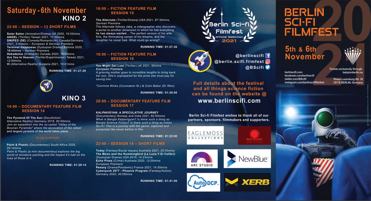 @BABYLON_Berlin https://bit.ly/3Ge3mso 1 Session €8 Fri 4x Session pass €20 Sat 5x Session pass €25 Full Wknd pass €40 5th-15th Nov ONLINE@xerbtv https://bit.ly/3C99rE4 1 Session $6 6 Sessions $25 12 Sessions $40 Full Fest pass $55#scifi#filmfestpic.twitter.com/PIFh6WDhru