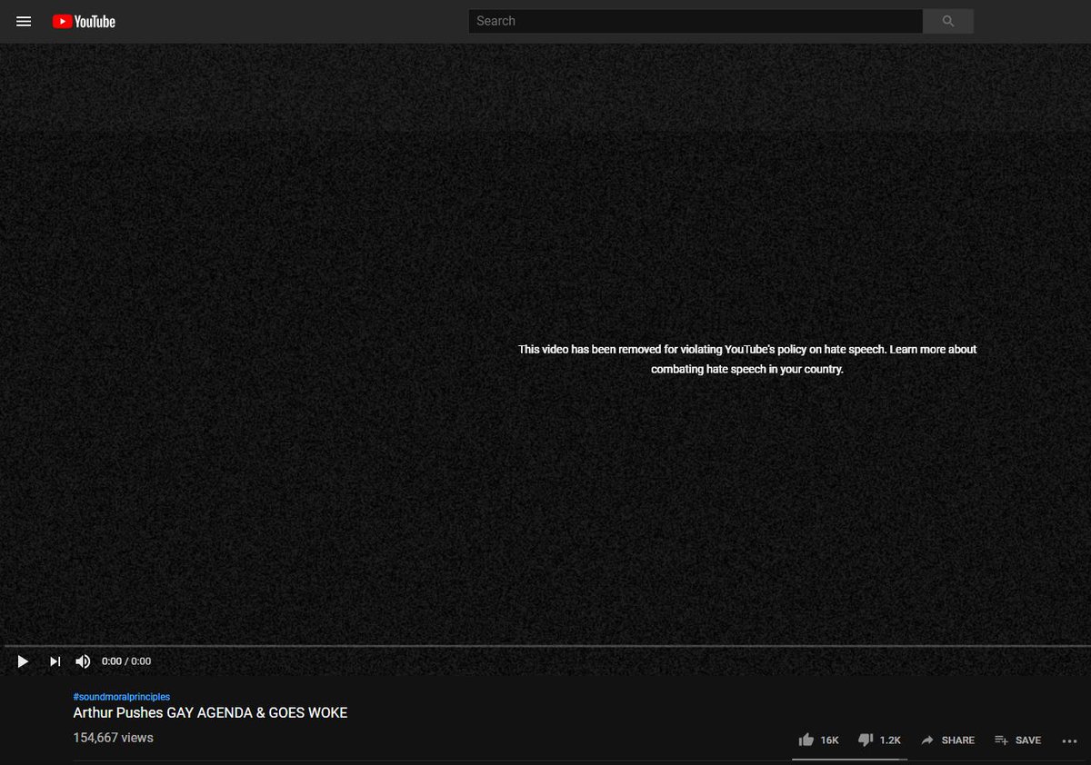 I'm really glad that @TeamYouTube is combating hate speech during Pride month by taking down videos that call out and criticize bigots and homophobes like this @shoe0nhead video posted today. Wouldn't want to be TOO supportive of the LGBTQ+, I guess.pic.twitter.com/6anOC4UBa1
