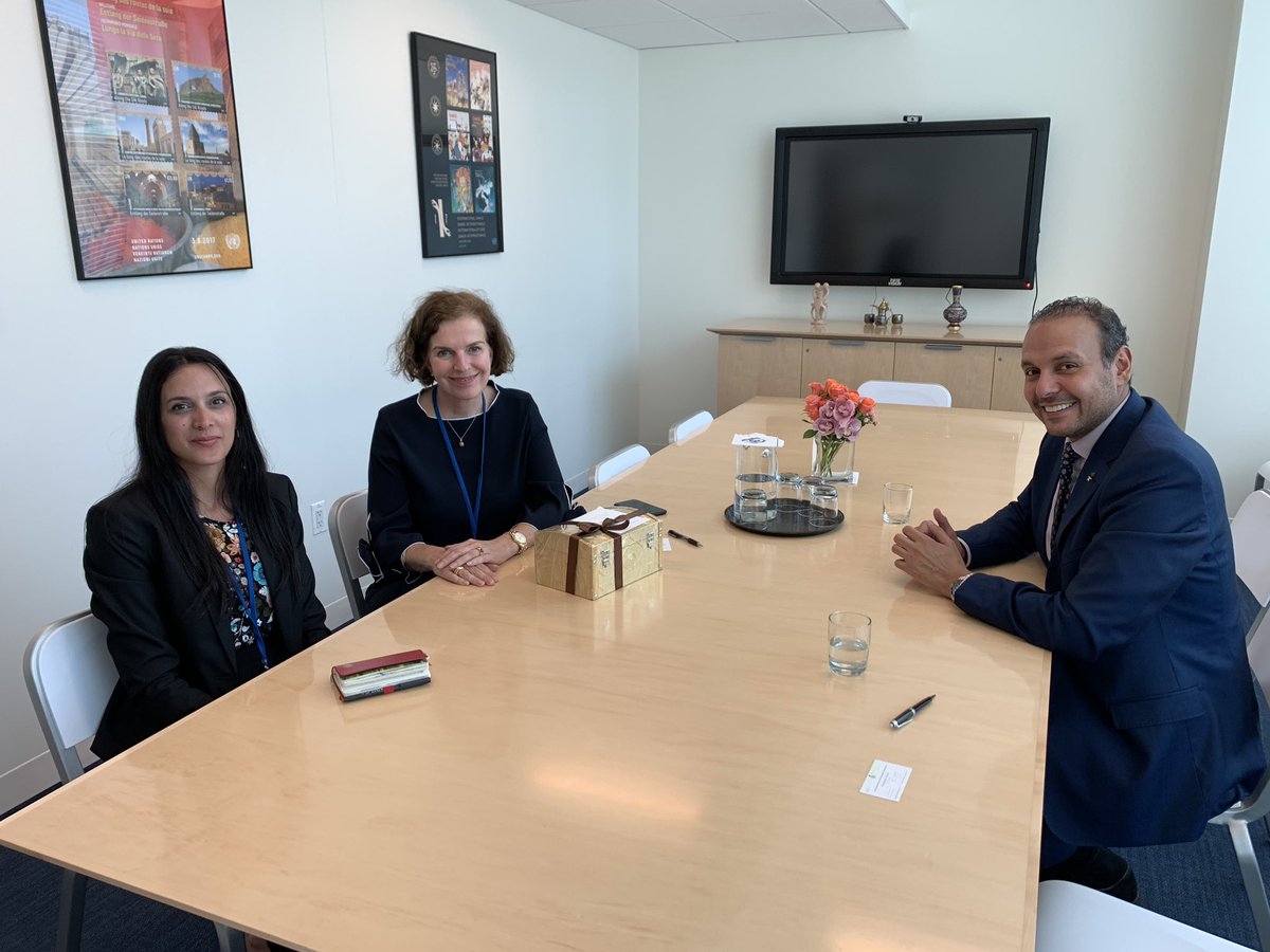 During a courtesy visit, DPR @khaledManzlawiy met with Ms. Bcatrix Kania the newly Chef of Protocol of the #UnitedNations to congratulate her for the new position, and to stress the keenness of @ksamissionun to continue the fruitful cooperation to serve the common interestspic.twitter.com/NCkdYOabEm