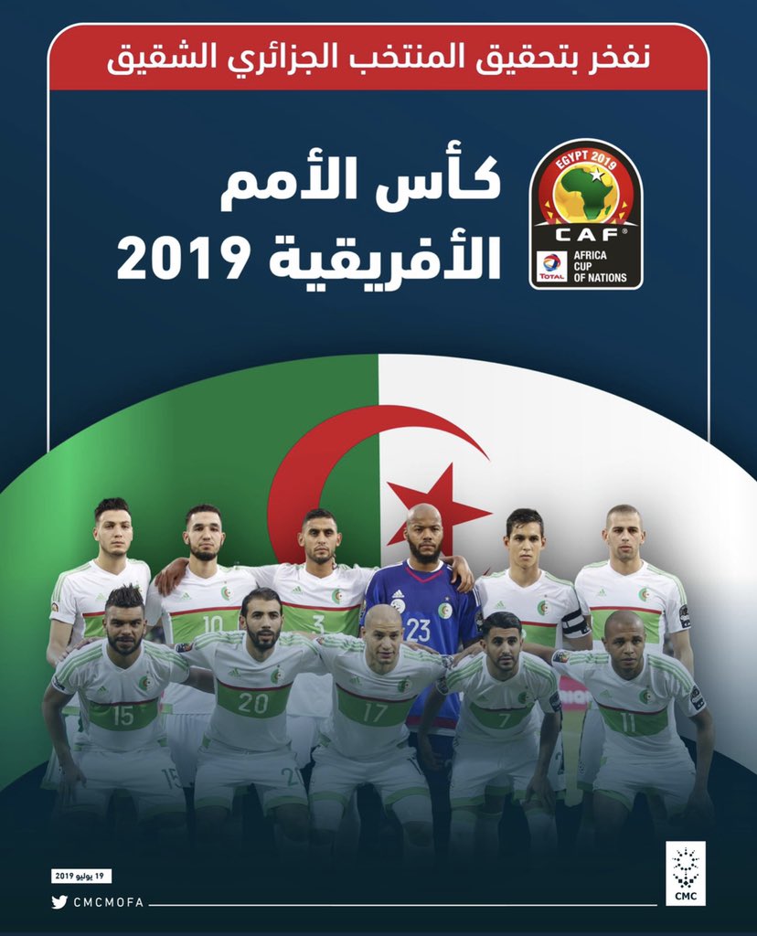 نهنئ الزملاء في @AlgeriaUN بمناسبة تحقيق منتخب جمهورية #الجزائر الشقيقة لكرة القدم #كأس_أمم_إفريقيا_2019