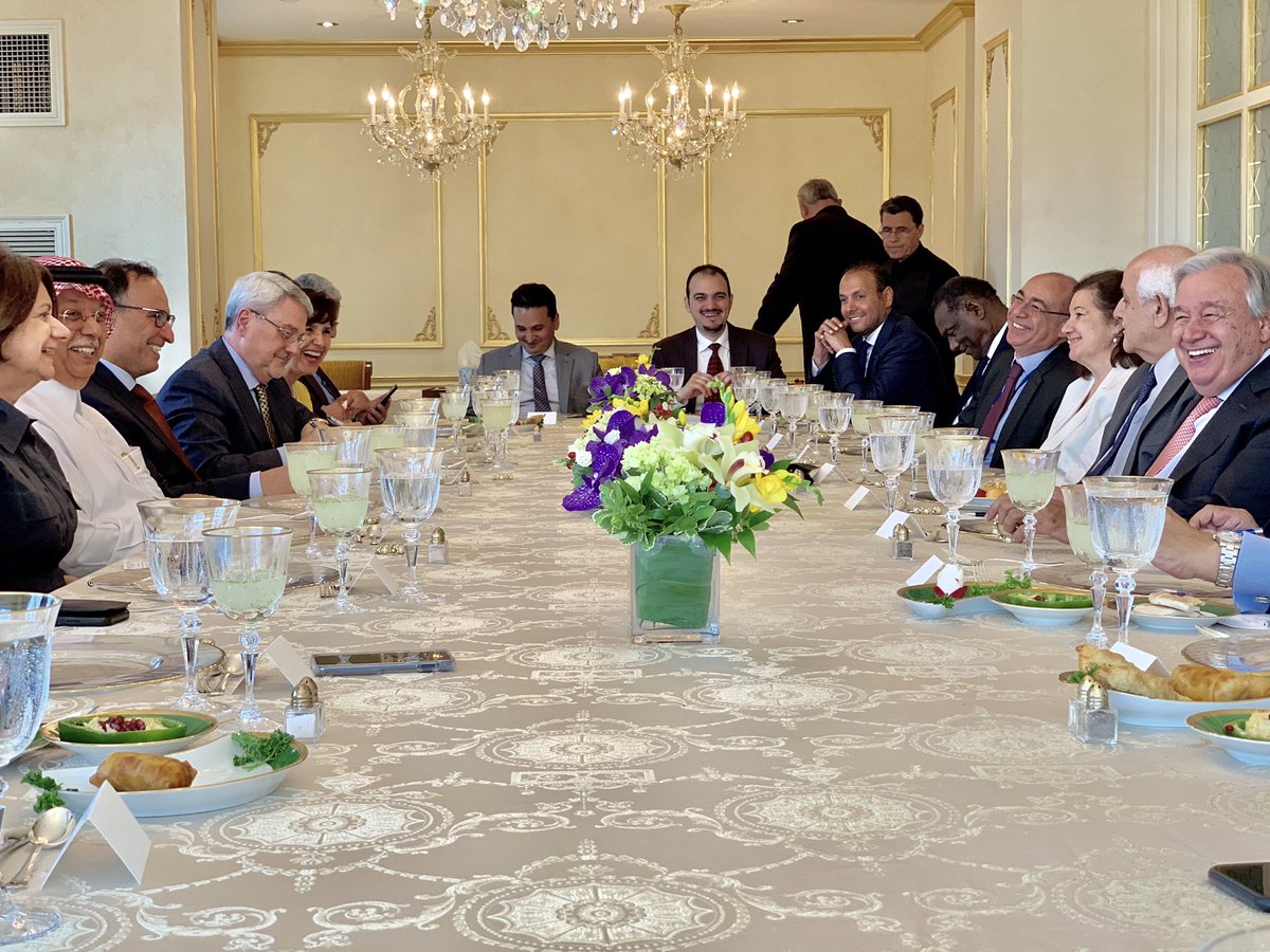 بصفته رئيسا للمجموعة العربية لهذا الشهر.. معالي المندوب الدائم @amouallimi يقيم حفل غداء على شرف معالي أمين عام الأمم المتحدة @antonioguterres بحضور عدد من المندوبين الدائمين للدول العربية الشقيقة وسفراء المنظمات العربية الاقليميةpic.twitter.com/x35JTDfuQu