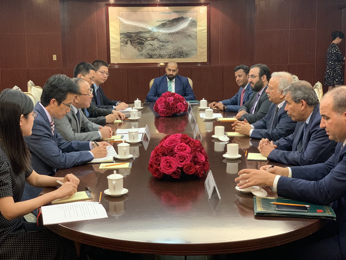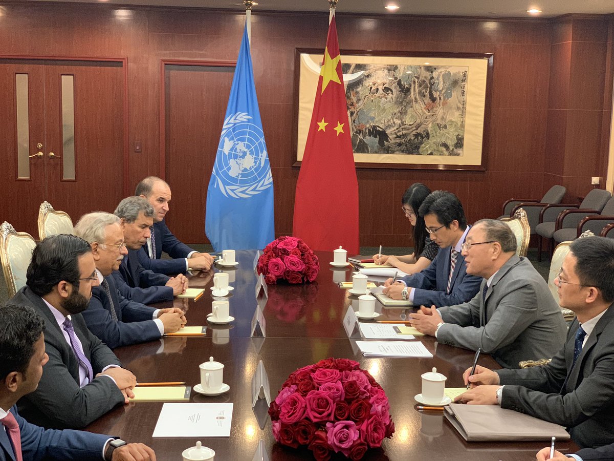 In order to ensure peace and security for the region, #Arab Troika Group( #SaudiArabia Yemen, Bahrain, Morocco, UAE, Arab League) led by #KSA met with H.E. Zhan Jun, Permanent Representative of People's Republic of China @Chinamission2unpic.twitter.com/5RoXPXP2xO