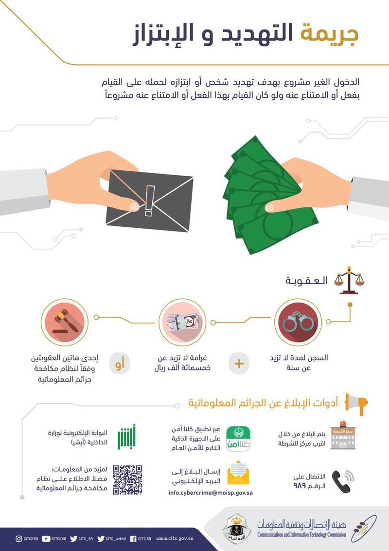 أقرت #المملكة قانون #مكافحة_الجرائم_المعلوماتية، الذي ينظم آلية استخدام التكنولوجيا والاتصالات، من خلال حماية الأفراد من أي محاولة لاختراق معرفاتهم الشخصية وسرقة معلوماتهم الشخصية إضافة إلى جرائم الابتزاز والتشهير وكل ما يتعلق بالألفاظ العنصرية المبنية على أساس العرق أو المذهبpic.twitter.com/vCeMweGY8a