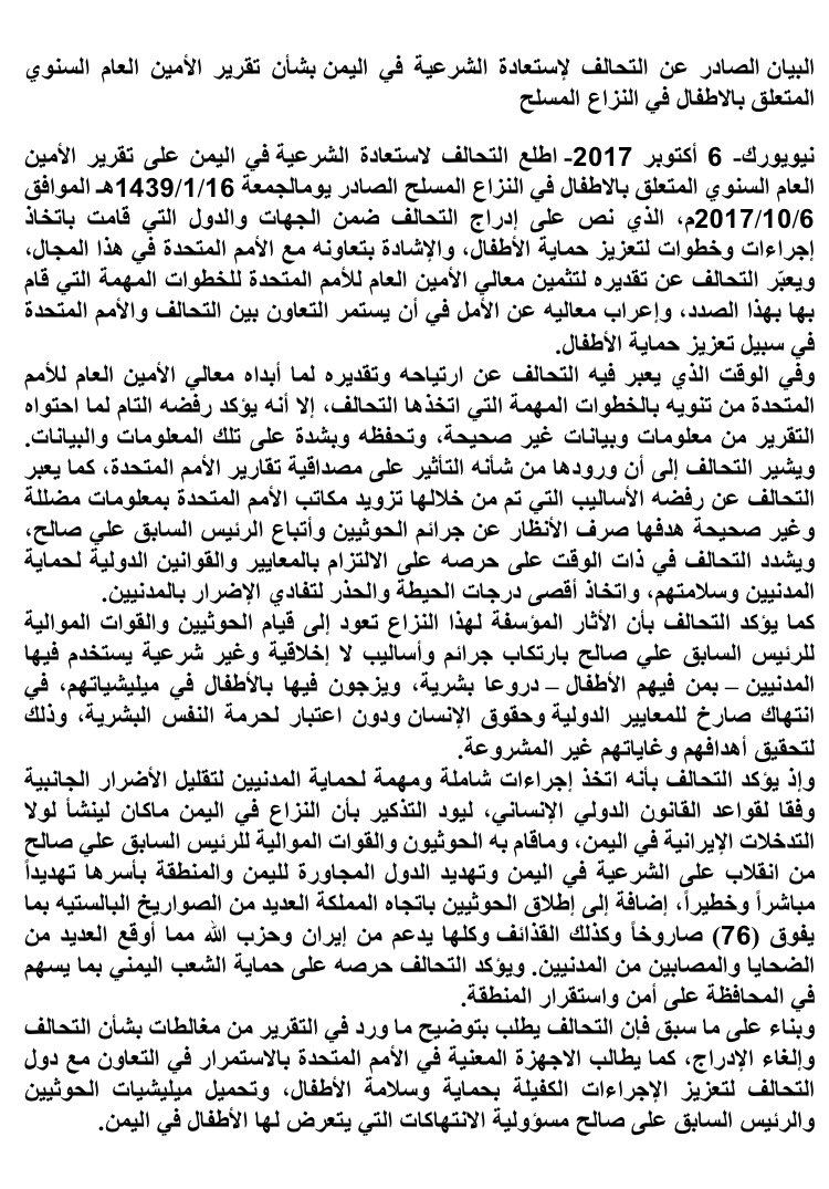 إذا كانت الأمم المتحدة قلقة على أطفال المسلمين فيجب على الدول القلقة الضغط على الإنقلابيين للعودة للشرعية وإلقاء السلاح