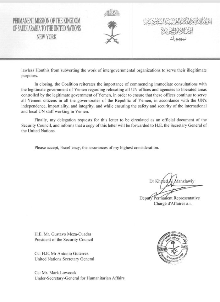 Permanent Mission of #SaudiArabia sent a letter to #UNSC in regards to