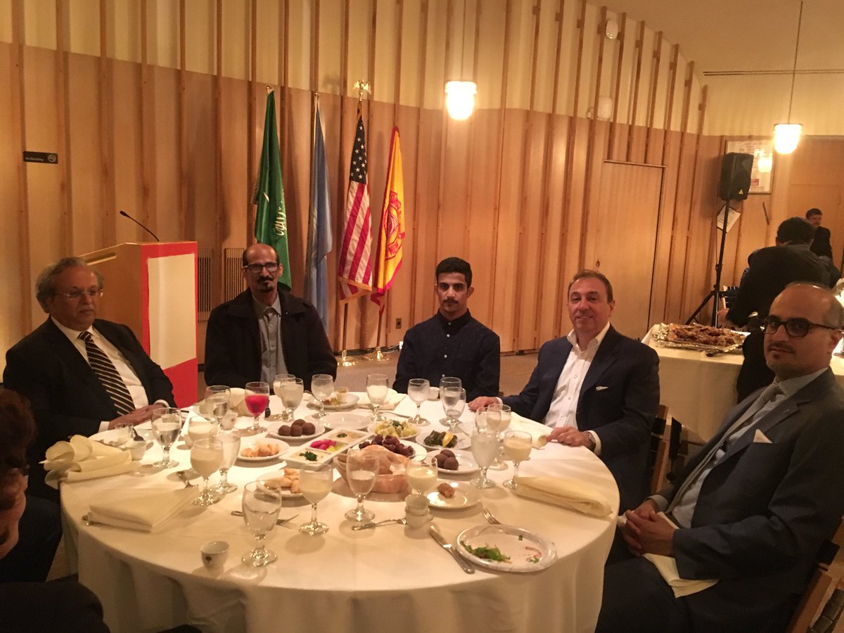 في اُمسية رمضانية مميزة احتفى السفير المعلمي والقنصل العام خالد الشريف برئيس الهيئة الوطنية لمكافحة الفساد د.خالد المحيسن والوفد المرافق له، وأحد أبطال #الحد_الجنوبي الذين نفخر بتواجدهم بيننا في نيويورك، و عدد من منسوبي وفد وقنصلية المملكة، وشركة أرامكو والخطوط السعوديه.pic.twitter.com/J7yPtVq5zV