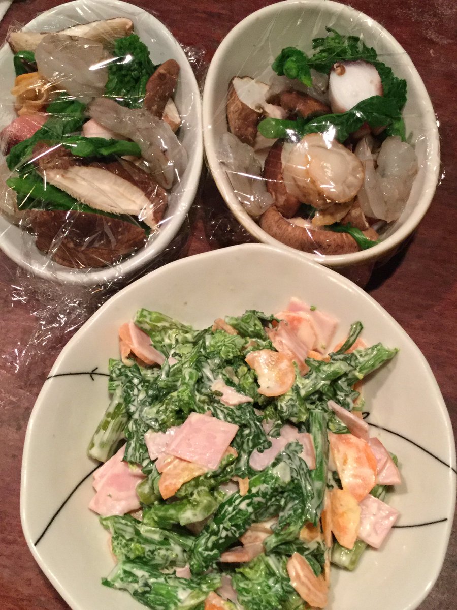 スヌーピーが加湿してくれてます!大根煮。カリフラワー酢漬け、カレー炒め。肉団子揚げ。菜花アヒージョ。トーフステーキ風、麻婆。椎茸肉詰め。深ネギ焼き。エビチリ。キムチ。焼売の皮鳥コマ揚げはチリソースで、、釜揚げ玉子うどん。にゅー麺他!pic.twitter.com/qth7yo5XMH