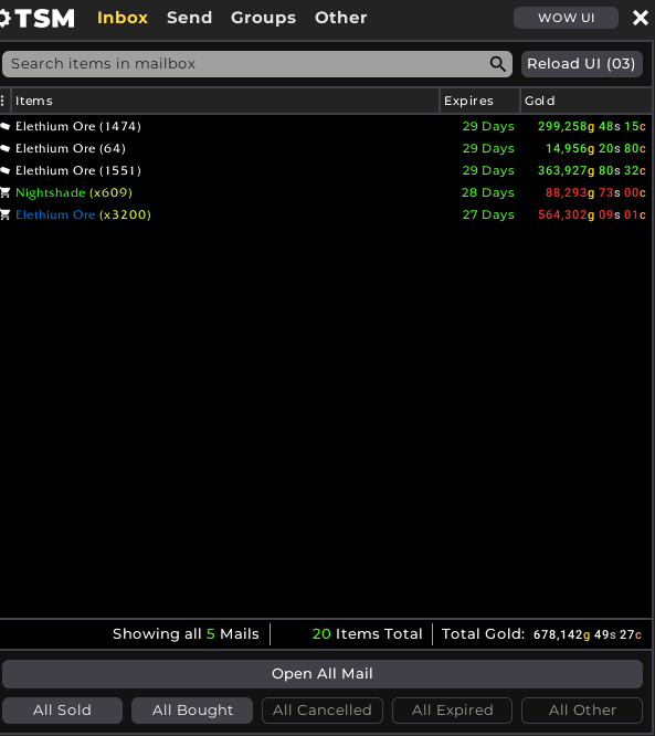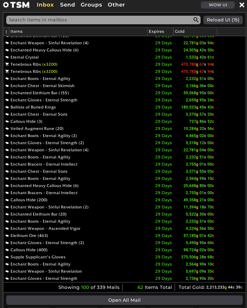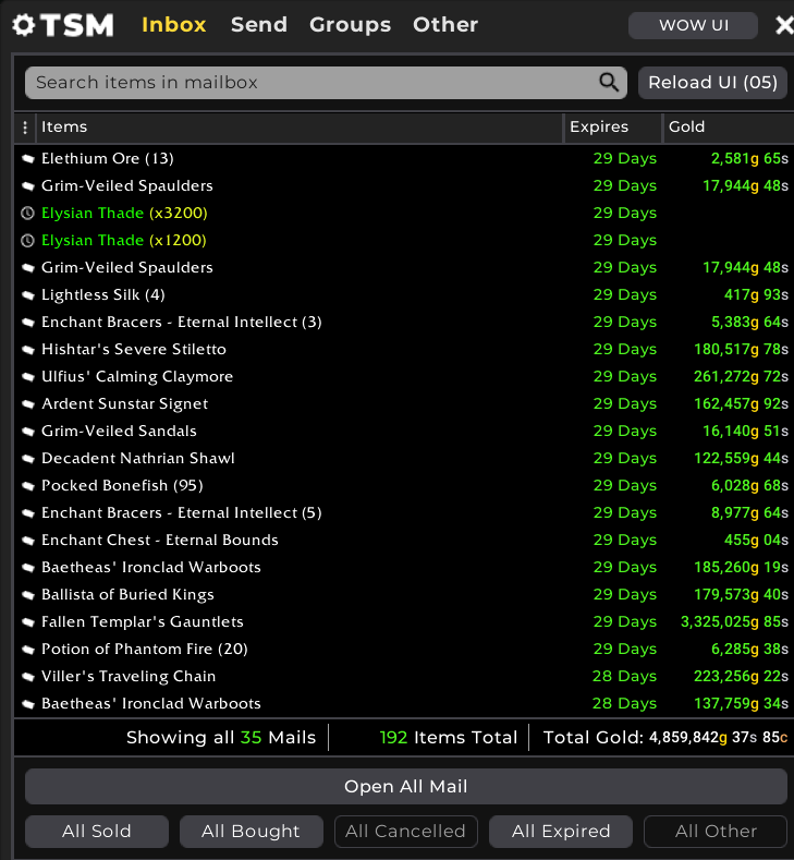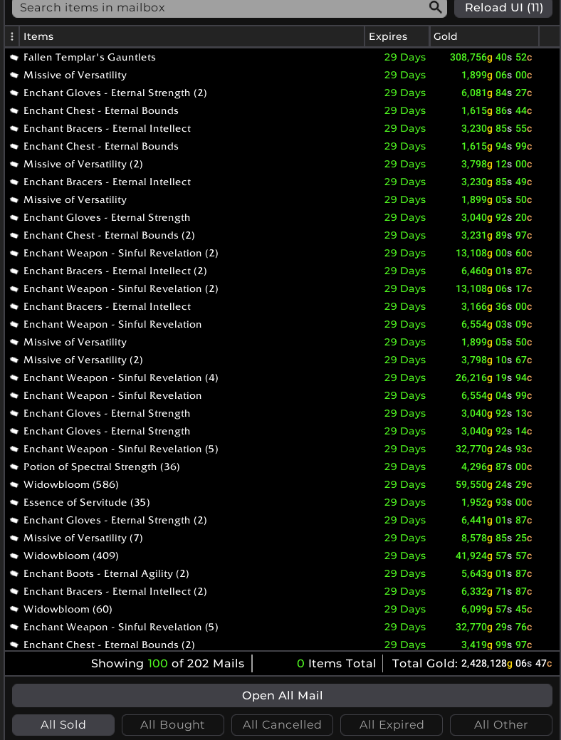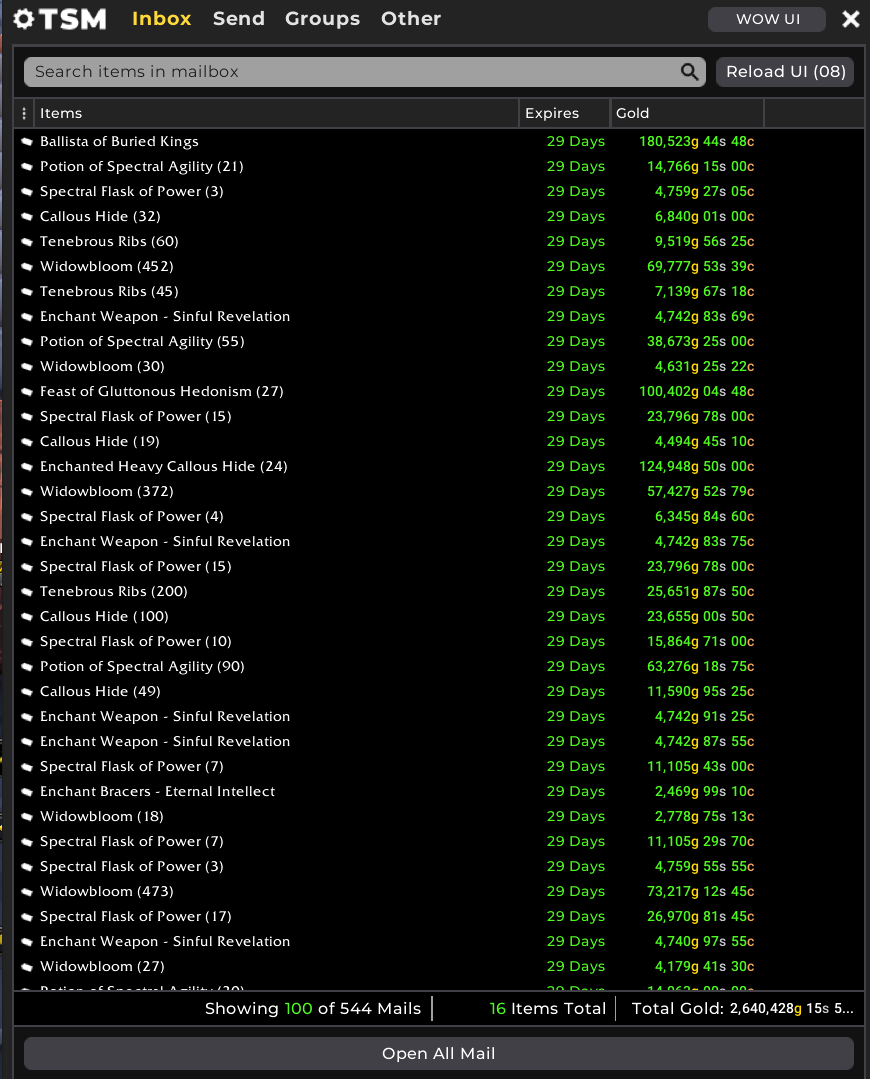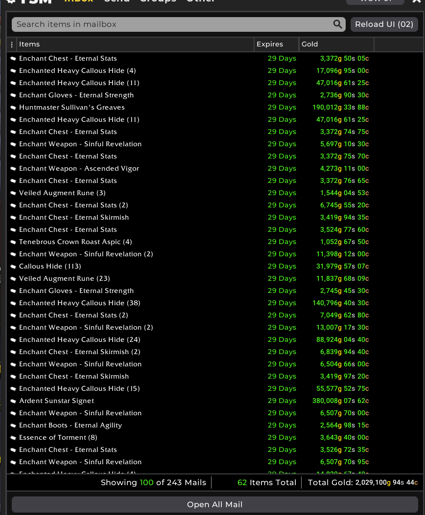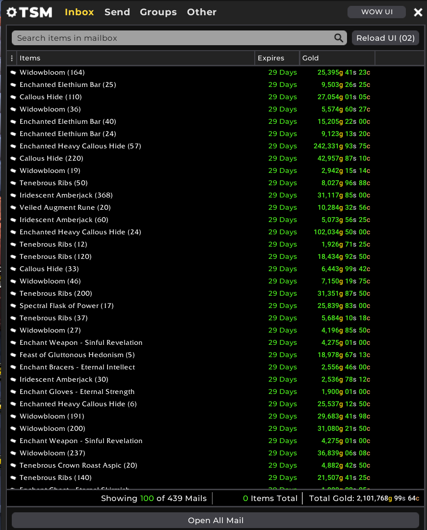 Thursday mailbox more than 6000k, I tried alchemy and it worked but heavy AH PVP. so hectic