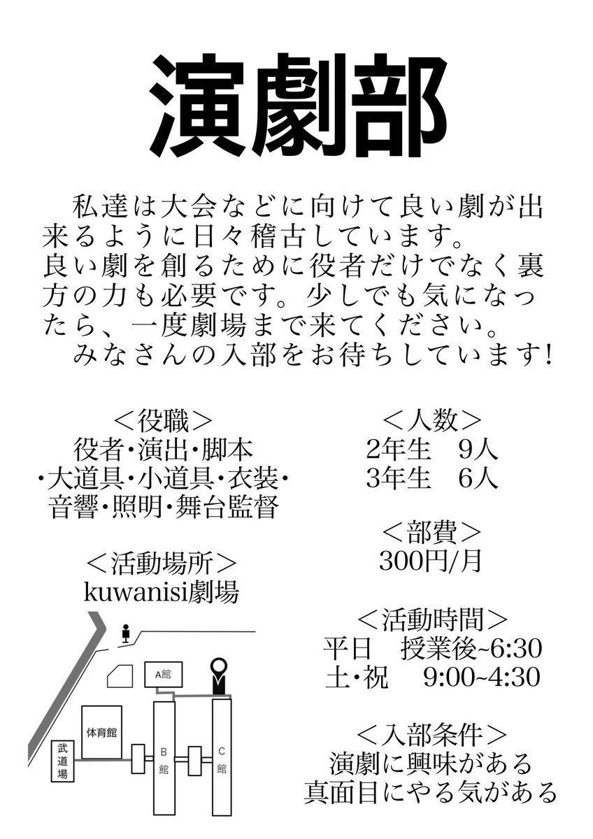 こんにちは! 新入生の皆さんー演劇部興味ありますか?? 今部員を募集中なので、是非待ってます^ω^pic.twitter.com/bH4BYetICe