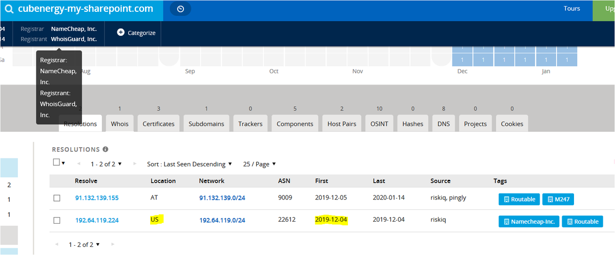 Note that cubenergy-my-sharepoint[.]com was initially resolved to IP address in US for one day (Dec 4), then was moved to current IP address in Austria.pic.twitter.com/Y5iPFf38HB