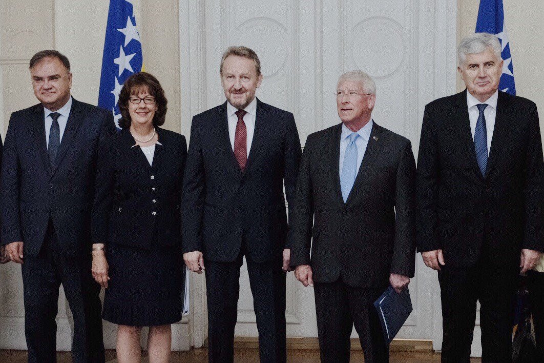 #Bosnian Presidency on Tuesday, chair@SenatorWicker warned government leaders that failure to address structural problems, ethnic discrimination, corruption is holding#Bosnia back, citing political impasse & often dangerous rhetoric. https://www.csce.gov/international-impact/press-and-media/speeches/press-conference-following-us-congressional-delegation …pic.twitter.com/MZnlmd8Qgg