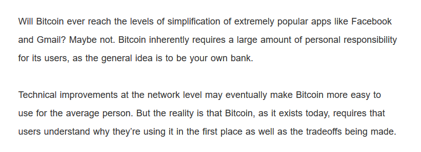 When Bitcoin software is developed to lower personal responsibility for the user, there is always a tradeoff in terms of removing the properties that make Bitcoin valuable in the first place. So argues