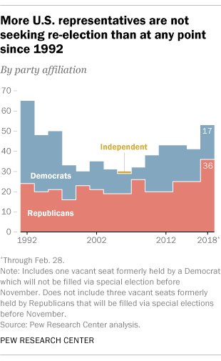 More members of the U.S. House of Representatives are choosing not to seek re-election to that body than at any time in the past quarter-century – including a record number of Republicans. https://pewrsr.ch/2FNEARg pic.twitter.com/54B86qzfhf