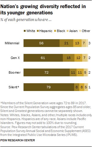Millennials are the most racially and ethnically diverse adult generation in the nation's history. The next generation stands to be even more diverse. https://pewrsr.ch/2Fx2DTq pic.twitter.com/rC5YvwLTJT