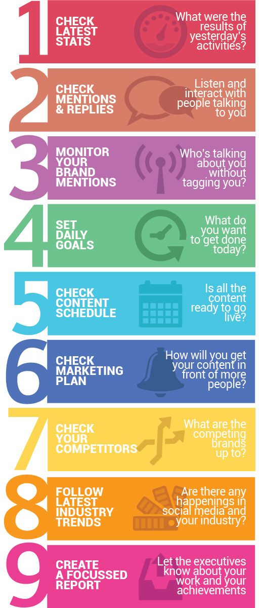 #SocialMedia Tasks You Should Carry Out at the Start of Every Day 1. Check stats 2. Check replies 3. Monitor your brand mentions 4. Set daily goals 5. Check content schedule 6. Check marketing plan 7. Check competitors 8. Follow trends 9. Create report#digitalmarketing#smmpic.twitter.com/mU1v6SAgwY