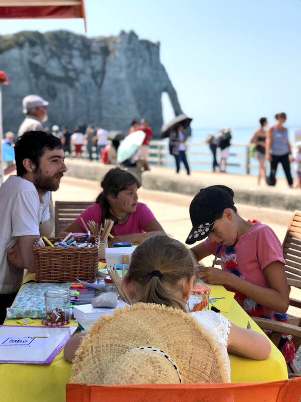 Dimanche 15 juillet, le Labo des histoires Normandie était en atelier d'écriture de cartes postales à Etretat (Seune-Maritime). Malgré la concurrence (