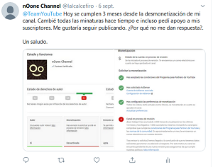 @TeamYouTube Hola, hace 4 meses me desmonetizaron por error "miniaturas confusas". Las cambié y sigo sin respuesta oficial. Escribí varias veces, pero el estado de mi cuenta sigue igual. Necesito que me revisen por favor para poder seguir y saber que hacer con mis fans, Gracias!pic.twitter.com/8O1HApfJjK
