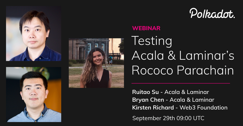 On today's webinar: Testing @Polkadot's cross-chain capability Hosted by Kirsten Richard@web3foundation Joined by@ruitao_su &@XiliangChen to show case Acala &@LaminarProtocol parachains on Polkadot testnet#Rococo Sign up free