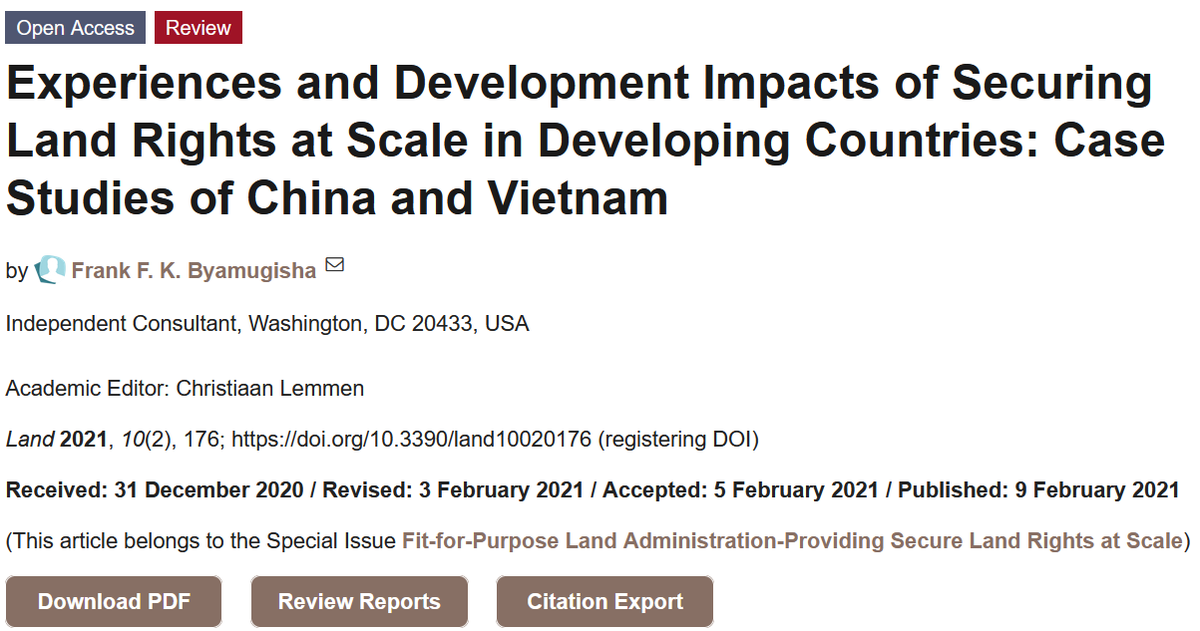 #LandRights at Scale in Developing Countries: Case Studies of China and Vietnam by Frank F. K. Byamugisha https://www.mdpi.com/2073-445X/10/2/176 …pic.twitter.com/NoXqMiJ0Ln