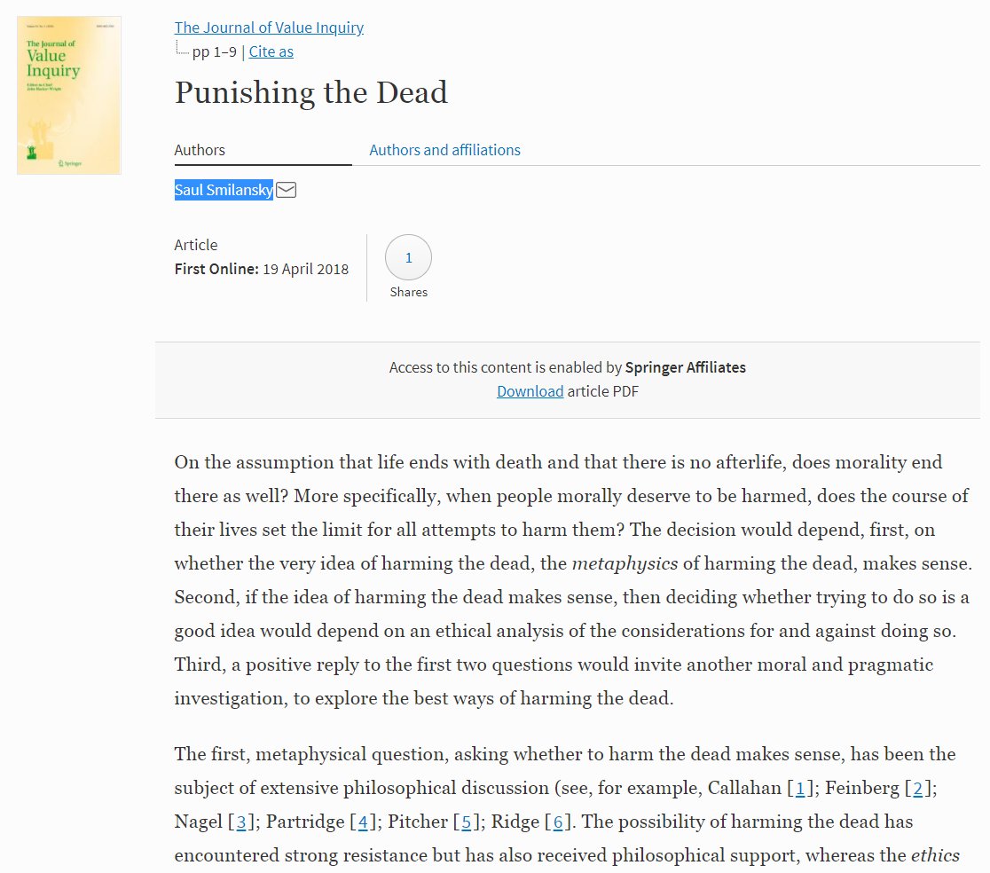 from The Journal of Value Inquiry Punishing the Dead by Saul Smilansky https://link.springer.com/article/10.1007/s10790-018-9630-4 … pic.twitter.com/ywJ9t3Ps6T