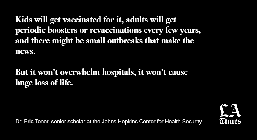 In the future, COVID-19 will likely become an ordinary part of life — a common respiratory illness like those caused by other coronaviruses that were circulating before the pandemic began, Toner said. https://www.latimes.com/science/story/2021-02-10/why-scientists-are-not-panicking-about-new-coronavirus-variants …pic.twitter.com/19u3MAqEe6