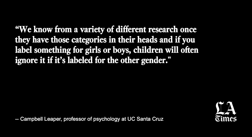 Campbell Leaper, a distinguished professor of psychology at UC Santa Cruz, said companies began using gender labels and pink and blue indicators to market products specifically to girls or boys during the 1940s and 1950s. https://www.latimes.com/california/story/2021-10-09/california-will-require-large-retailers-to-provide-gender-neutral-toy-sections …pic.twitter.com/z0gaxgwnMA