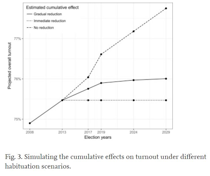 Very happy to see this paper with @difkovits on the effects of Austria's lowering of the voting age to 16 out in @ElectoralStdies! In short, we find that there is a turnout habituation effect among 16-year-olds, and that this effect isn't politically neutral.https://twitter.com/ElectoralStdies/status/1159379904904998913 …