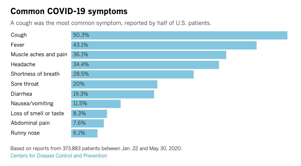 One thing that would be helpful here would be data on the most *distinctive* symptoms of COVID rather than the most *common* ones.https://twitter.com/mattdpearce/status/1276643362536165376 …