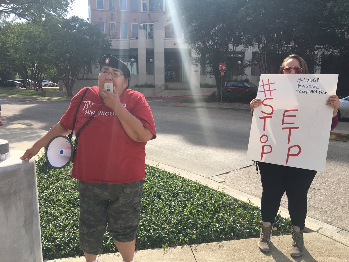 #StopBayouBridge pipeline and#StopETP water protectors from North Dakota to Louisiana pay a visit to Energy Transfer Partners HQ here in Dallas, Texas to protest ETPs many illegal and egregious acts of environmental destruction and Indigenous rights abuses.pic.twitter.com/NNpfwNfTcK