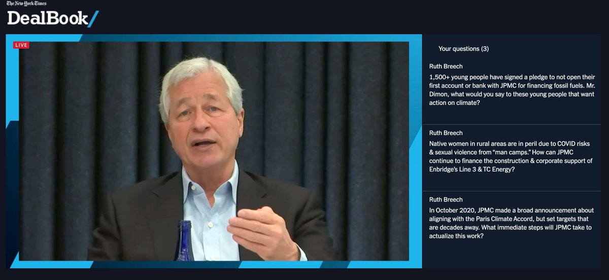 @RAN’s Climate and Energy Director Paddy McCully confronts Chase CEO Jamie Dimon with strong words about his role perpetuating the climate crisis and his own blatant hypocrisy. Jamie replies we still need air conditioning.pic.twitter.com/vFulvZ7iPJ
