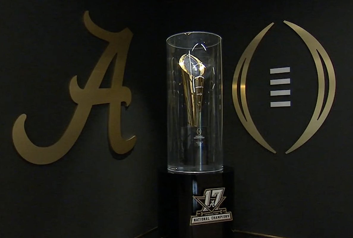 Nice tribute at Alabama to their 2017 co-champs: the colors in the room with their CFP Trophy are in UCF colors.pic.twitter.com/gvEs3Lj4qg