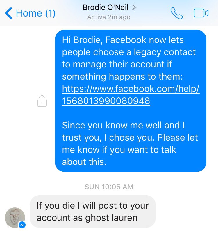 I was updating my Facebook privacy settings and it asked for a "legacy contact" so I chose my brother. Great choice.pic.twitter.com/KGJEMxCPLz
