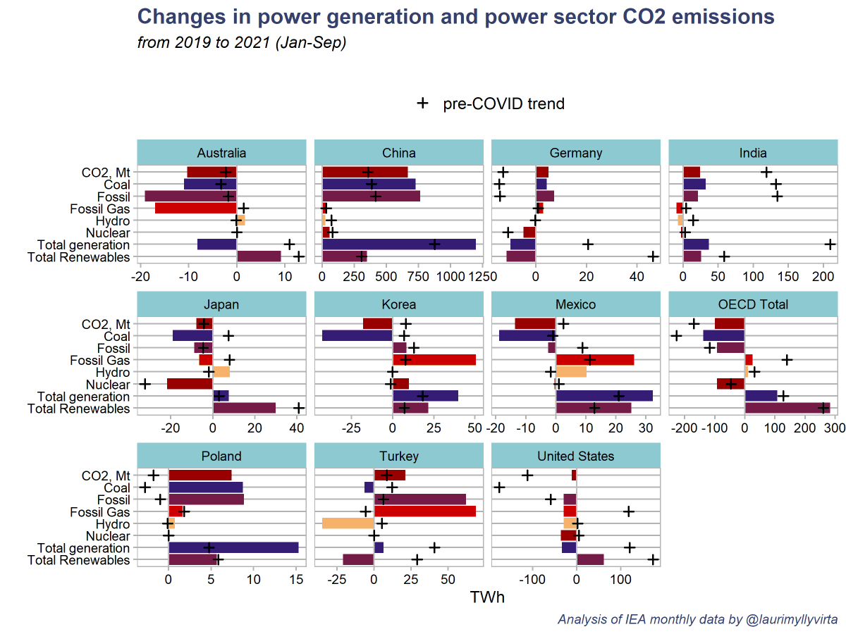 Whenever I hear the phrase "China and India" I'm instinctively inhaling because whoever says that is in for a lungful. Yes fossil power generation in both countries is up this year but India's is still down from peak in 2018-19 and 1/5 of China's level, while China went up up up.https://twitter.com/laurimyllyvirta/status/1471481198107103242 …
